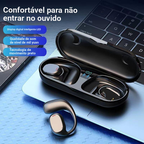 Auriculares sem fio Bluetooth com bateria de longa duração, exibição de chamadas, tecnologia de condução óssea, design esportivo e de suspensão