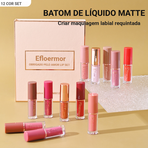 Kit de 12 unidades de batom e gloss labial matizado e brilhante